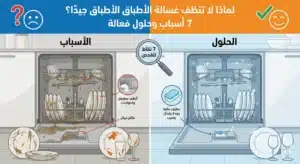 السبب: مشاكل في مضخة الماء أو التسخين تؤثر على جودة التنظيف.