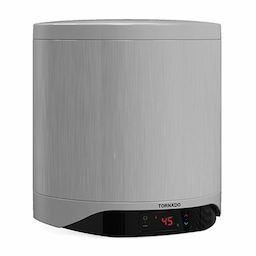 سخان مياه تورنيدو يأتي بتصميم أسطواني دائري، مما يجعله مثاليًا للتركيب في أي مكان. أبعاده (450 × 450 × 490) مم بدون الكرتونة و(532 × 532 × 588) مم بالكرتونة، ووزنه الصافي 15.6 كجم. يتوفر السخان بلون سيلفر الأنيق.