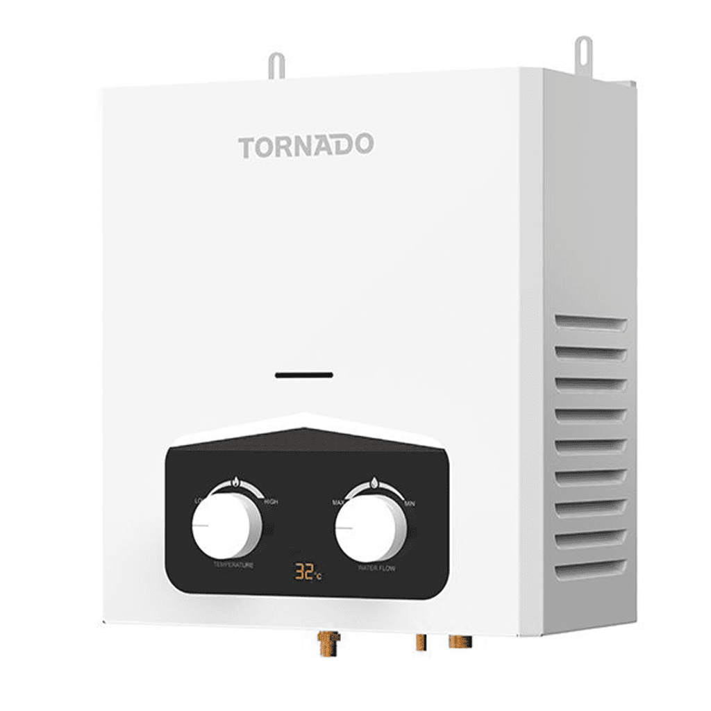 سخان مياه تورنيدو غاز 6 لتر بدون مدخنة، غاز طبيعي، أبيض